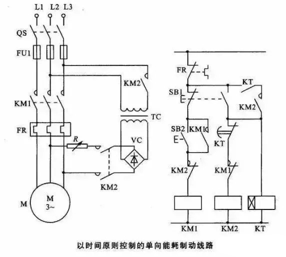9,以时间原则控制的单向能耗制动控制电路。